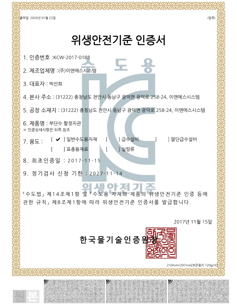 위생안전기준(KC) 인증 > 특허및인증