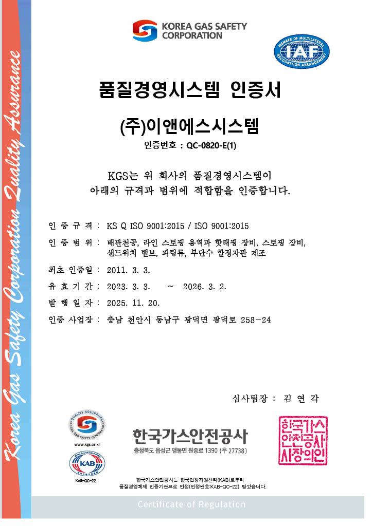 ISO 인증서 페이지 정보 작성자 (주)이앤에스시스템 작성일17-03-22 18:14 조회857회 댓글0건 관련링크 이전글 다음글 목록 본문 ISO 인증서 (국문)발행일 25.11.20 이전글 다음글 목록